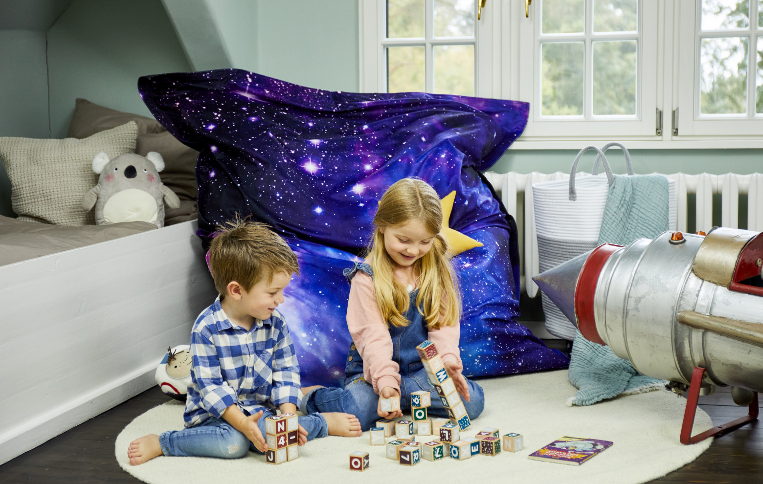 Dieser Sitzsack begleitet dich auf eine Reise durchs All – und zwar bei dir zu Hause! Der softe Veloursstoff auf der Front sorgt für eine samtige Haptik und auch der spacige Print ist ideal zum Chillen & Träumen. Entdecke mit dem Sitzsack Galaxy XXL-Komfort – und die Weiten des Universums!